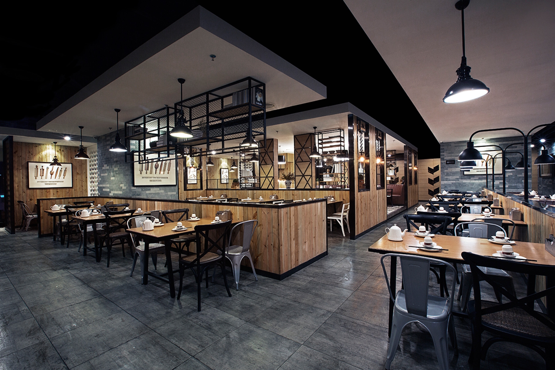 设计师在保留了餐饮品牌本身现有连锁店雅致色系,在此基础上通过全场增添更多的原木色的软转摆设,丰富空间感,让就餐者感受到充实,亲切,舒适,从而拉近客户与餐厅的关系。质朴的同色系调材质,工业风家具,简洁大气的块面,精致充满乐趣的细部亮点,打造国际气质亮感空间,而在灯具和软装部分装饰物上,设计师加入工业化元素,让整个空间感更加时尚更有型。