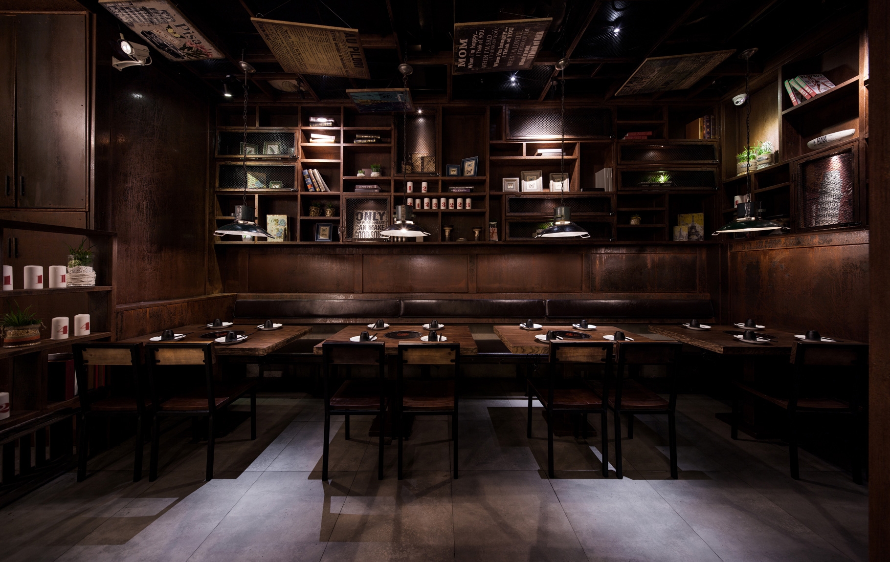 这家让人感到精致和新意的砂师弟在广州东方宝泰为食客们敞开了门,我们相信客户们能感受到设计师的精心布置和设计理念。 本案设计师的主题是利用铁板和钢铁的做旧处理,红砖披白灰等元素演绎了一番新的时尚工业风,在这个快节奏摩登的时代,质朴,原始,复古,经典这种“旧”的文化反而深深被大众们青睐,而能利用设计在大都市的心脏处为食客们创造一处,能暂时逃避繁忙的生活,这是该项目的初衷。 当你进入这个店,相当于进入了一个怀旧体验区,黑板上的Q人物画为沉静的餐厅注入鲜活因子,一个经典的人物,唤起了多少人童时的记忆和乐趣,现实与经典汇融在于此,创造出新的体验。而锈迹斑斑的铁艺与质朴的水泥砖相结合,营造出洒脱,不被束缚的张扬个性,来吸引与味觉完美结合。软装内饰上随意搭配书籍,杯子等具有生活气息的饰品,你会发现这里三一个轻松自在并有趣的就餐空间,如果你在这里,记得来体验这令人垂延的牛腩煲哦!