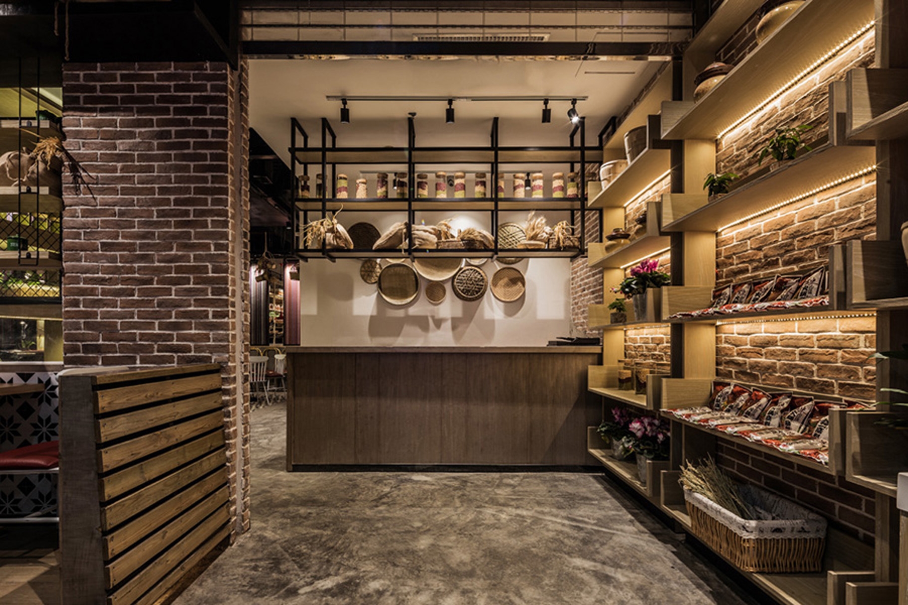 “红豆生南国,春来发几枝?愿君多采撷,此物最相思”,相思乃至刻骨,红豆寄寓之深,令人动容,可见红豆也是情之所寄。如今吃着豆米火锅,你可曾想起生命中的某人? 本案选择“豆米博物馆”的概念作为设计主题,餐厅位于 ,当用餐不在只是简单的食用,而是从味觉到视觉再到心灵的过程,空间寄存了太多的朴实而变得静怡。这样的一个餐厅,将给都市中快节奏生活的人们提供了一个既可以品尝美食,同时也可以享受最原始的农家气氛的朴实之角落。其设计理念是让城消费者感受“大自然静逸深处的农家朴实”,用现代的手法呈现最朴实的豆与米的文化。浓浓豆香,真情共享!让一切可见更自然,更深入了解豆文化,带来视觉上的互动感受。 目标主要客户群体为青年群体;品牌定位为打造一流餐饮企业,引领现代健康美食风尚。此次豆米火锅以豆类博物馆情调为蓝本,表达一种对城市喧嚣下向往质朴生活的感怀。整个空间用木色系为基调,通过这种强烈的色彩唤起食客的怀旧情怀。 简洁自然的空间结构其精髓是空间的自由与流动。当人的躯体不被空间禁锢,才能获得心灵的自由。空间的自由与流动,才是人性的必需。自由流动的空间,充满序列、节奏,有景深层次的变化,因而也更容易产生诗意。在这样的空间里就餐,心情定是愉悦放松的。 周围陈列的豆类物种突出农家淳朴特色的手法给人视觉带来强烈冲击力,情调感十足的小灯泡配上质朴的装饰画,给空间添加了情趣与主题相呼应的氛围,晕黄的灯光与朴实的空间基调相得益彰,娴静温柔的带来一种安全感。 复古怀旧的墙面与豆类竹藤等极具现代农家风情的相互交融,贯穿整个空间。古朴的色彩与纹理将淳朴的农家场景化为现实,木料所散发出的特殊香味给予空间一种遐想。这种自然的怀旧格调,将体验者从都市的冰冷中唤醒,去体验另一方自然朴实的味道。